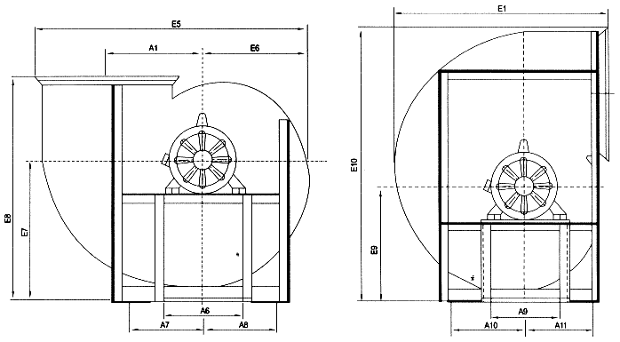 根據不同的需要可以制作成A式電機傳動、C式皮帶傳動,D式聯軸器傳動等,也可以根據不同防腐防爆要求,制作成4-72(79)離心風機、防爆風機,4-72(79)離心風機